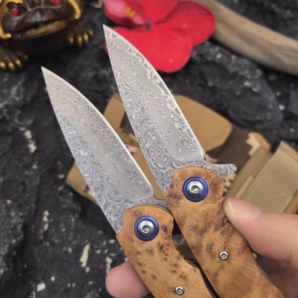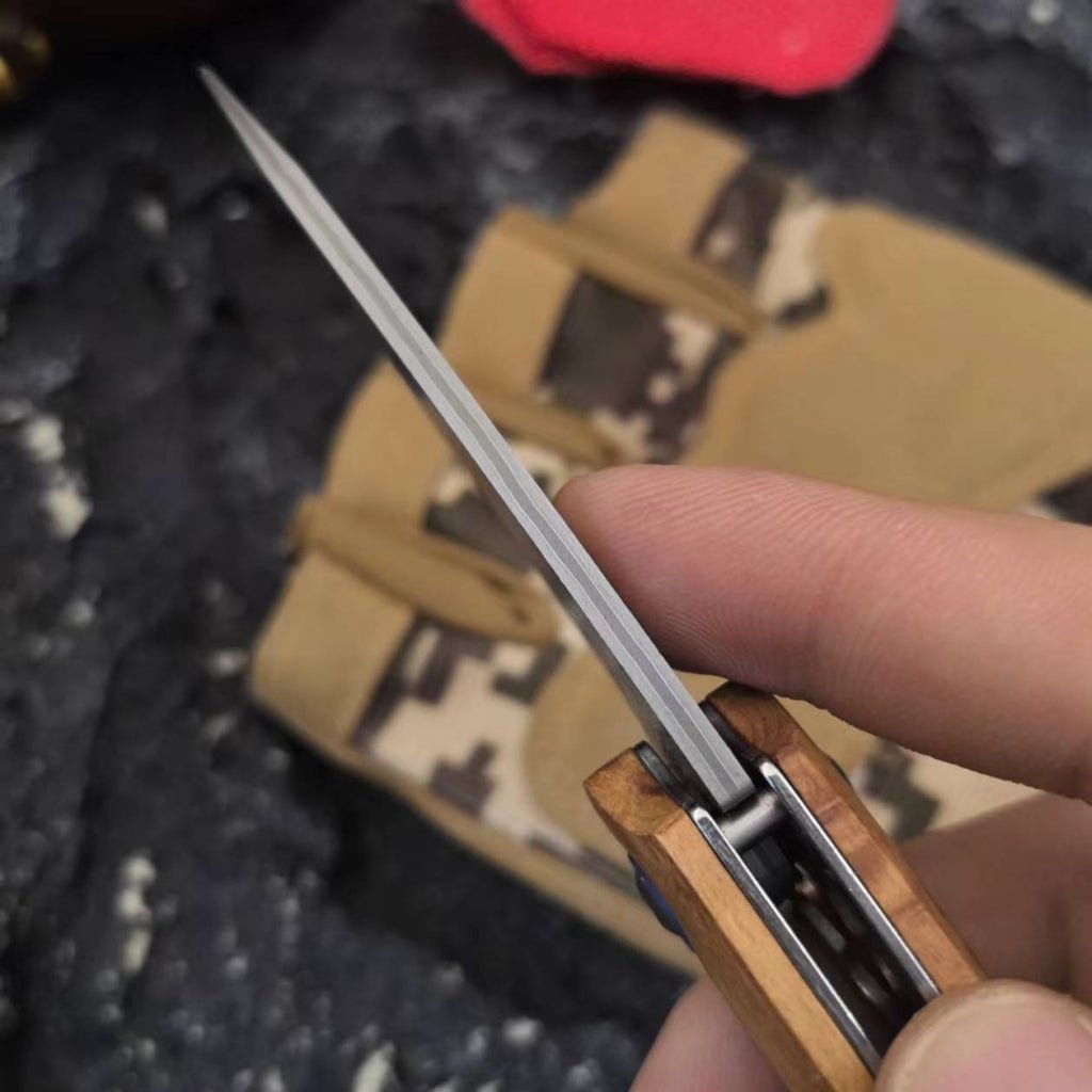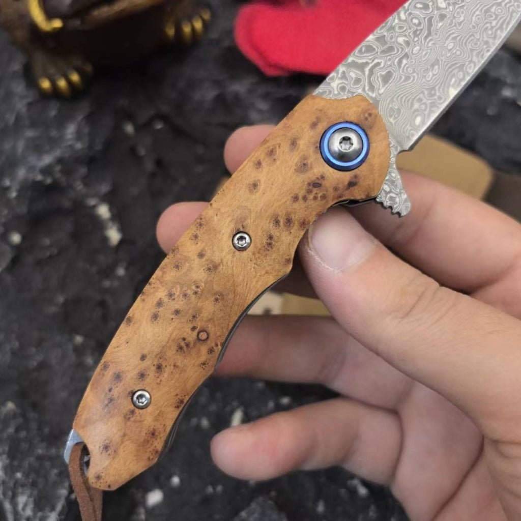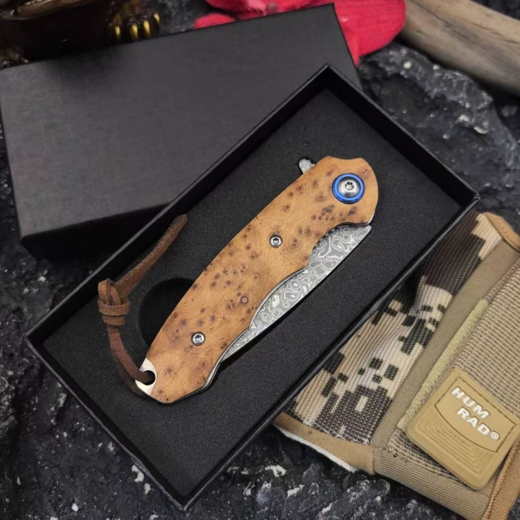 Advantage: Shadow wood shanks not only provide good durability and grip but also have a unique artistic aesthetic. Its unique grain and color make this folding knife more appealing in appearance and enhance its overall texture.